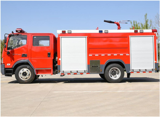 3.車輛兩側上方各配有3個紅藍爆閃燈 3 個側照明燈,下方安裝安全標志燈和側回復反射器(組合式),配有前、后示廓燈,兩側各一只轉向燈,乘員室、器材箱、泵房內均裝有照明燈,并符合GB4785 規定。