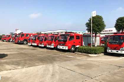 消防車現車停放在停車場,每輛消防車經過嚴格的測試,保障消防車的品質。